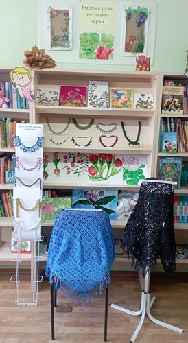 Здесь представлены работы женщин из библиотечного клуба "Отрада". Приглашаем всех желающих посетить выставку. Вы узнаете, чем увлекаются наши односельчанки в свободное время. Они рисуют, вышивают, вяжут и создают украшения из бисера.