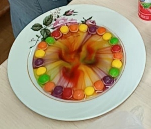 "Библио - лаборатория" "Радуга в стакане" "Радуга на тарелке" "Лавовая лампа" После "мозгового штурма" участников мероприятия пригласили в "библио - лабораторию", где библиотекари проводили практические эксперименты и мастер - классы: "Магнетизм книг", "Лавовая лампа", "Радуга на листе", "Радуга в стакане", "Радуга на тарелке"... Очень увлекательно и необычно прошел познавательный час в библиотеке.