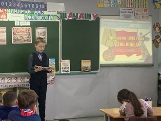 Черемисская сельская библиотека традиционно приняла участие в IX Всероссийской акции "200 минут чтения: Сталинграду посвящается". Акция была приурочена к 83 - й годовщине разгрома советскими войсками немецко - фашистских войск в Сталинградской битве (17 июля 1942 г. - 2 февраля 1943г.) Организатором акции является Волгоградское муниципальное учреждение культуры "Централизованная система детских библиотек". В рамках акции, для учащихся начальной школы прошел час памяти "Когда кипела волжская вода". Библиотекарь рассказала о ключевых моментах Сталинградской битвы, прочитала информацию из школьного словарика «Великая Отечественная война», рассказ С. Алексеева «Геннадий Сталинградович», а также отрывки из энциклопедии для малышей Е. Ульевой «Беседы о войне». Дети самостоятельно зачитывали информацию "Сражение под Сталинградом" из книги Е. Ульевой "Беседы о войне" и рассказы С.Алексеева "Титаев" и "Победа под Сталинградом". В память о всех погибших воинах Сталинградской битвы была проведена минута молчания. Для нашего поколения это не просто история, а память о тех страшных годах, которую мы никогда не должны забывать. В библиотеке оформлена книжная выставка "Не ради славы и наград мы защищали Сталинград", где представлена информация о Комиссарове Александре Андреевиче — жителе села Черемисское, участнике Сталинградской битвы. Ссылка - УЧИТЕЛЯ - ФРОНТОВИКИ
