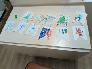 Конечно же, мы не могли оставить это без внимания! Наши юные гости с огромным энтузиазмом взялись за подготовку подарков. Что может быть лучше подарка, сделанного своими руками? Ребята нарисовали десятки ярких флажков, из которых получилась длинная - предлинная праздничная гирлянда.