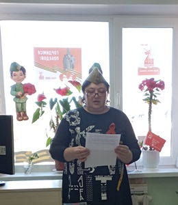 О.А.Вяткина рассказала о Дровнине Николае Павловиче.Артиллерист, освобождал Прибалтику. Л.М.Белоусова рассказала о Белоусове Матвее Ивановиче. Рядовой. Стрелок. Воевал на Курской дуге.